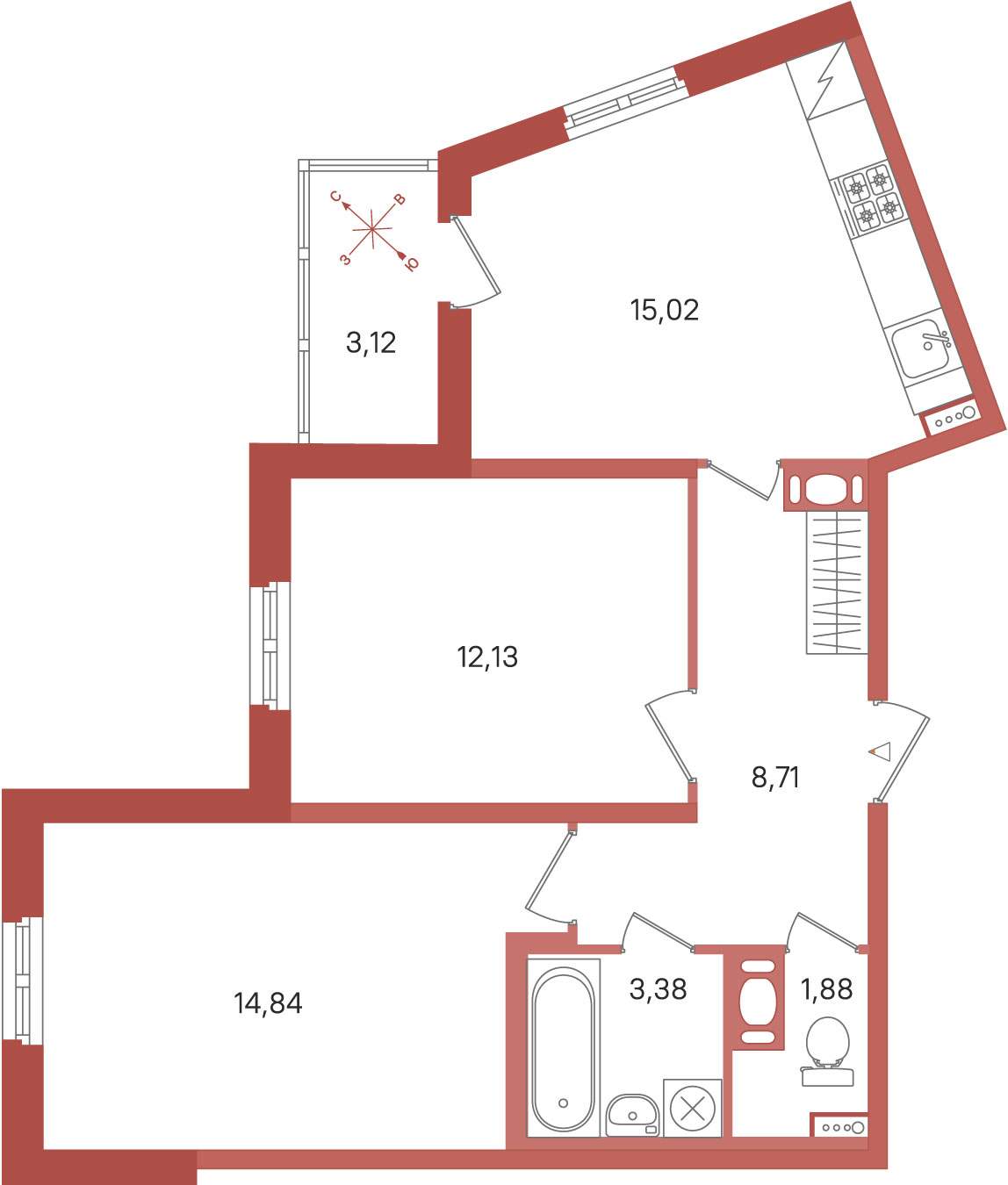 15.02 м²