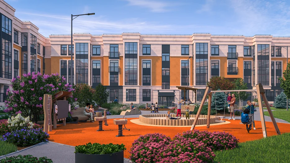 Комплекс состоит из стильных 4-этажных домов с французскими балкончиками и зелеными дворами. На территории — свои детские сады (один уже работает), школа с бассейном, поликлиника, медицинский центр, спортивно-оздоровительный центр с бассейном, множество кафе, магазинов и сервисов на первых этажах и рядом большой ТРЦ с кинотеатром. Все квартиры сдаются с отделкой и отдельно можно заказать услугу полной мебелировки. Стоимость квартир — от 4,9 млн рублей.
