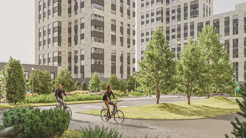 Это жилой комплекс средней этажности, спроектированный по принципам современной урбанистики: 8-этажные голубые, зеленые и кофейно-бежевые дома, уютные дворы с зонами для тихого отдыха, спортивными и детскими площадками, палисадниками и удобными дорожками. Есть экотропа «На краю леса», свой яблоневый сад, велосипедные дорожки, беседки для буккроссинга, детские и спортивные площадки.