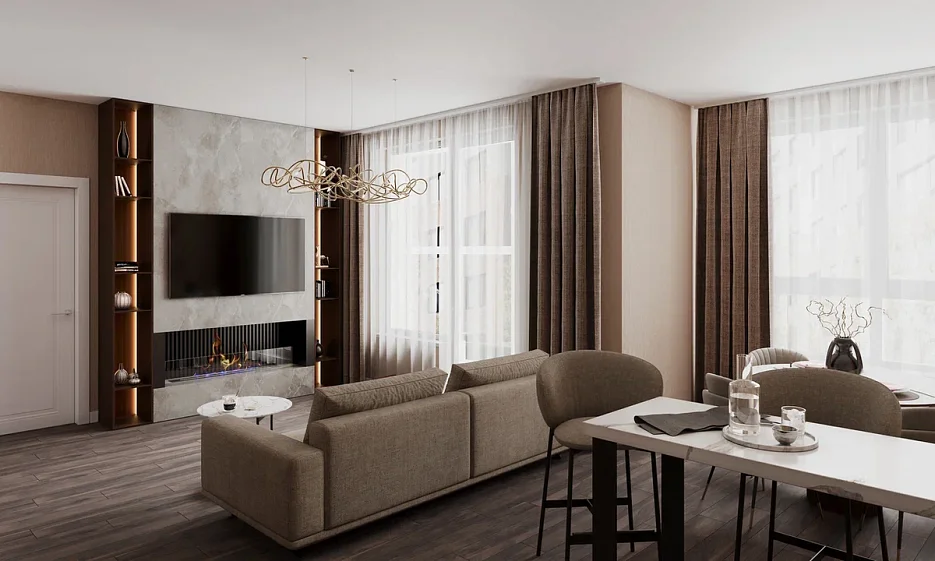 Квартиры сдаются с отделкой White Box — безупречная основа для тех, кто хочет создать индивидуальный интерьер. А для тех, кто предпочитает готовые решения, предусмотрены два варианта дизайнерской отделки: светлый «Мрамор» и тёмный «Камень». Также можно воспользоваться услугой полной меблировки квартиры, чтобы отметить долгожданное новоселье практически сразу после получения ключей.