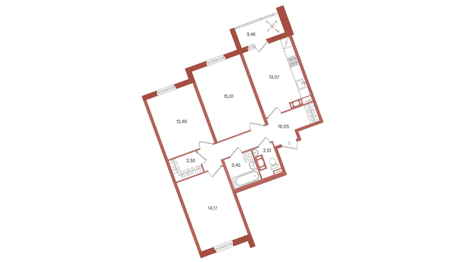 Для большой семьи уютным домом может стать 3-комнатная квартира 72.83 м², в которой у каждого будет личное пространство. Здесь вид на хвойный лес открывается из родительской спальни, лоджии и комнаты для солнечной детской или кабинета мечты, где свежие идеи и вдохновение будут рождаться сами по себе во время созерцания зелени за окном. Стоимость этой квартиры — 40 076 рублей в месяц.