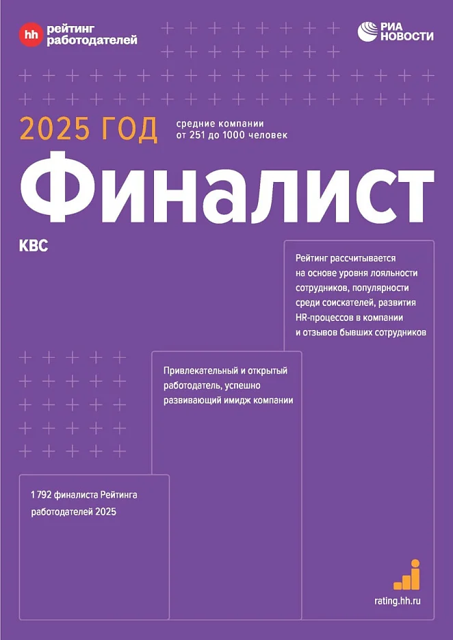 Присоединяйтесь к нашей большой команде профессионалов и создавайте будущее вместе с «КВС»! Посмотреть актуальные вакансии можно по ссылке: вакансии «КВС».