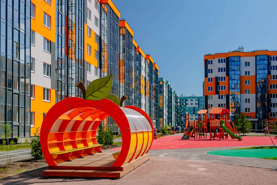 В каждом дворе — современные детские площадки, зоны отдыха и площадки для активных игр. Пешеходные и велосипедные дорожки проходят по всей территории и переходят в маршруты, ведущие в лесопарк. В проекте есть и спортивный кластер «Территория спорта» — уникальное пространство для пробежек, игр и занятий фитнесом на свежем воздухе с родными и друзьями.