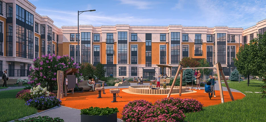 «Золотая рыбка» — это камерный квартал, состоящий из четырёх домов высотой всего четыре этажа. Здесь — продуманные планировки от студий до четырёхкомнатных, с гардеробными, мастер-спальнями, террасами, французскими балконами и трёхметровыми потолками на последнем этаже.