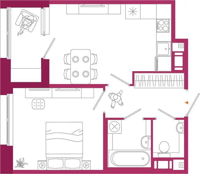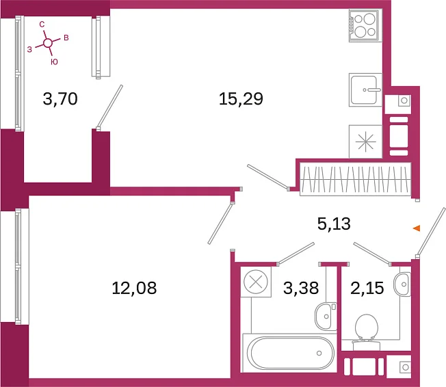 1-комнатная, 38.03 м²