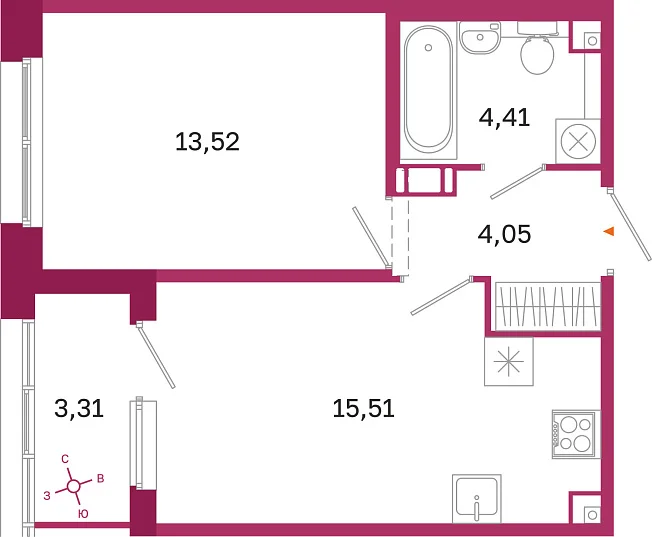 - 15.51 м²