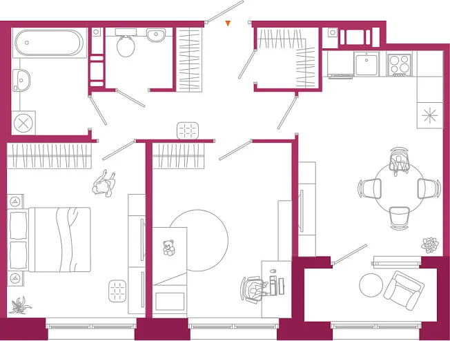 2-комнатная, 58.37 м²