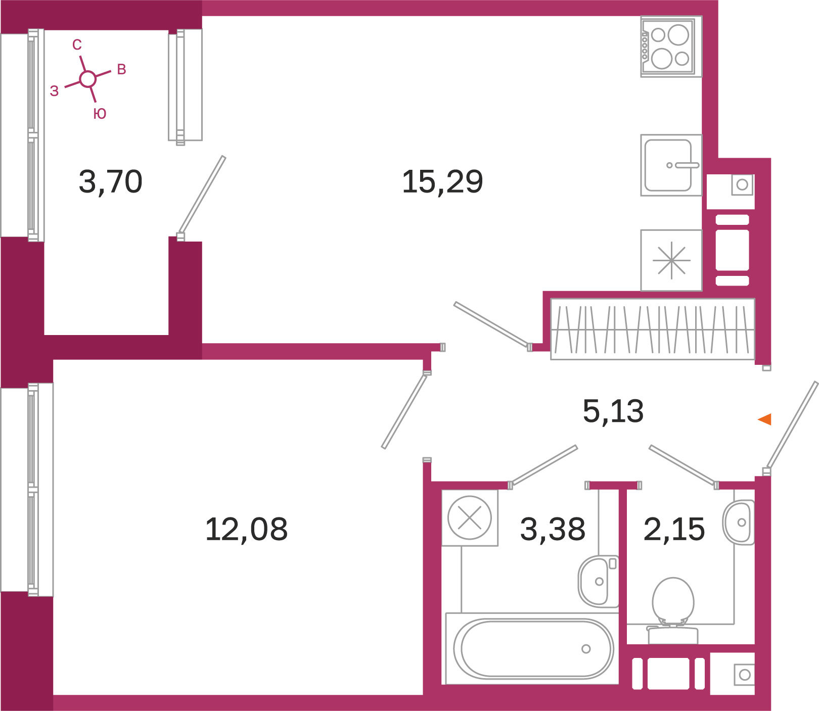 15.29 м²