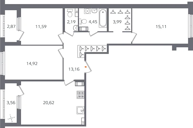 3-комнатная, 86.03 м²