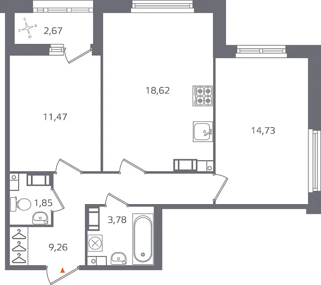 2-комнатная, 59.71 м²