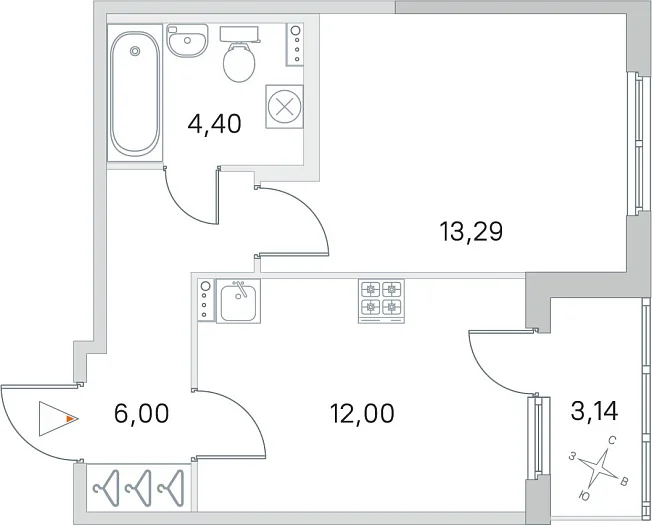 1-комнатная, 35.69 м²