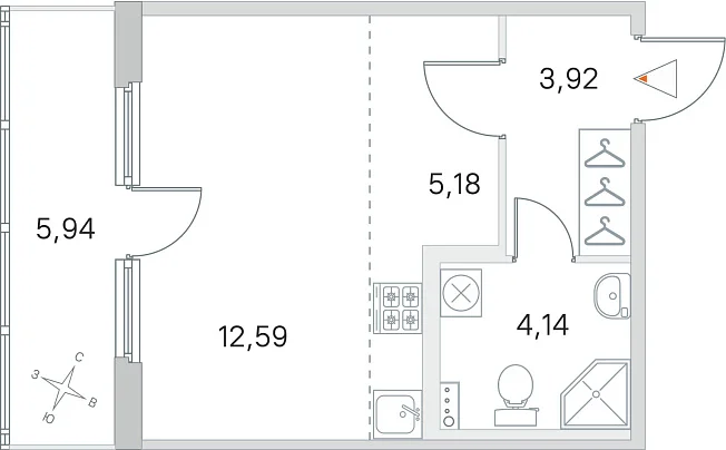 Студия, 25.83 м²