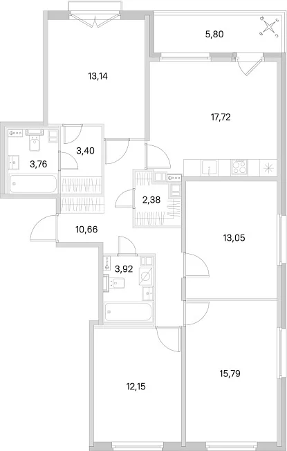 4-комнатная, 95.97 м²