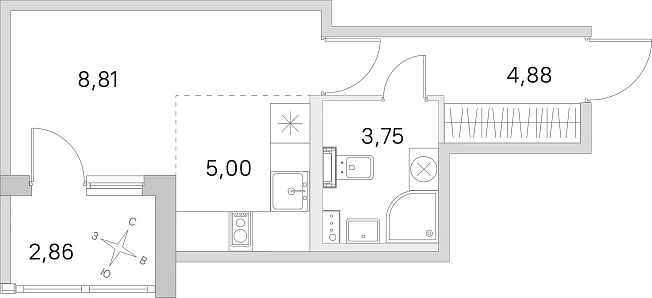 Студия, 22.44 м²