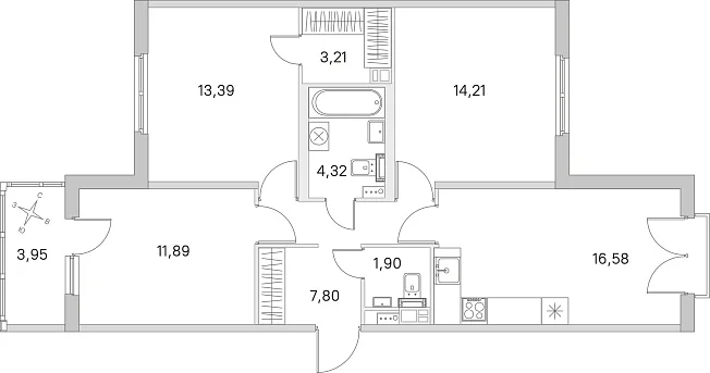3-комнатная, 73.30 м²