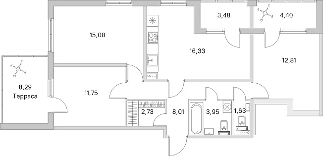 3-комнатная, 72.29 м²