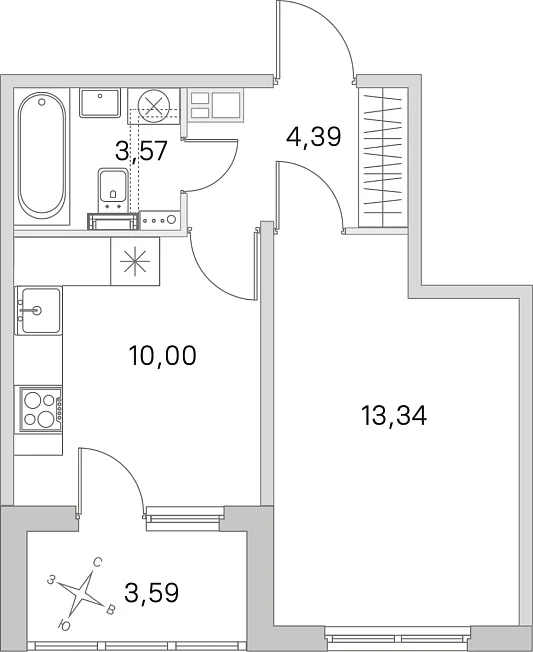 - 13.34 м²