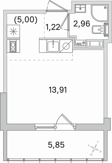 Студия, 23.09 м²