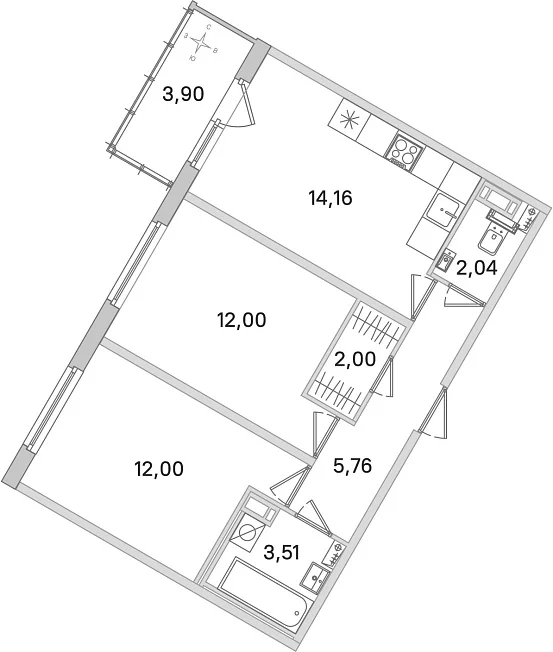 2-комнатная, 51.47 м²