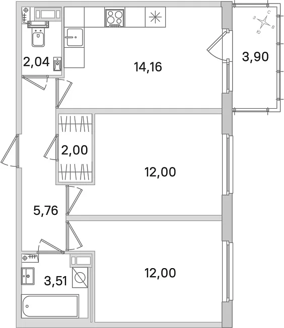 2-комнатная, 51.47 м²
