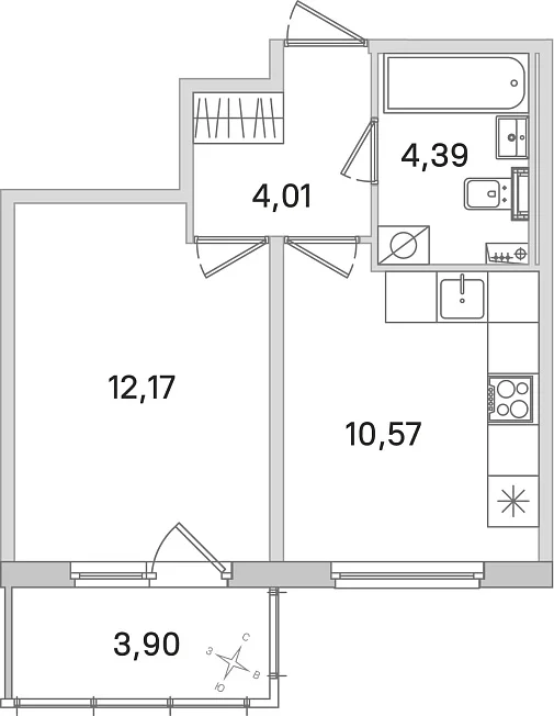 1-комнатная, 31.14 м²