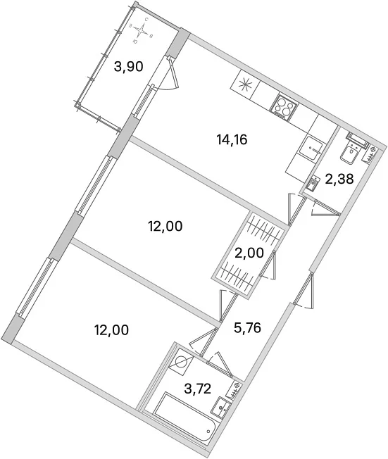 2-комнатная, 52.02 м²