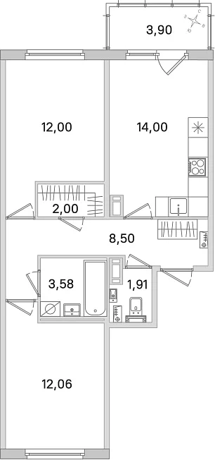 2-комнатная, 54.05 м²