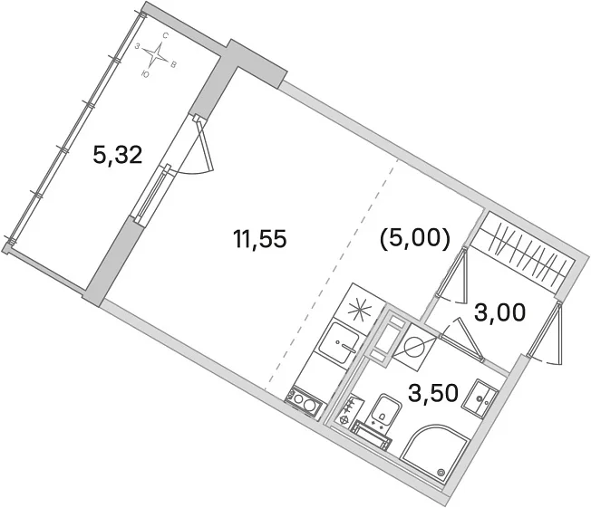 Студия, 23.05 м²