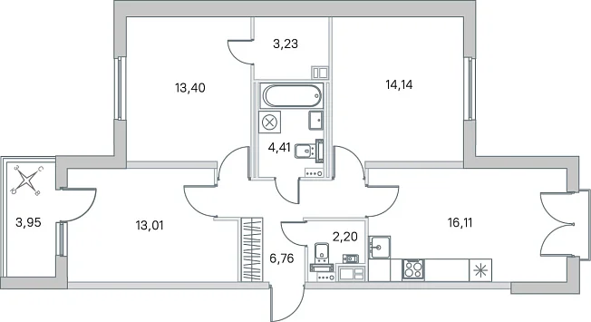 3-комнатная, 73.26 м²