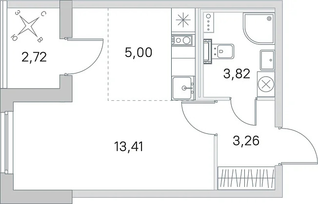 Студия, 25.49 м²