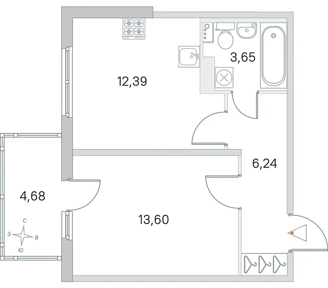 - 12.39 м²