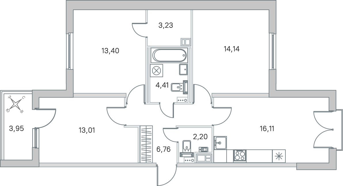 16.33 м²