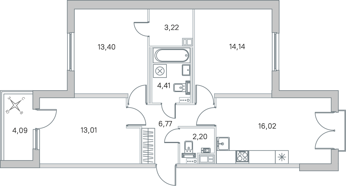 21.09 м²
