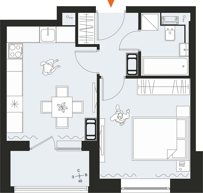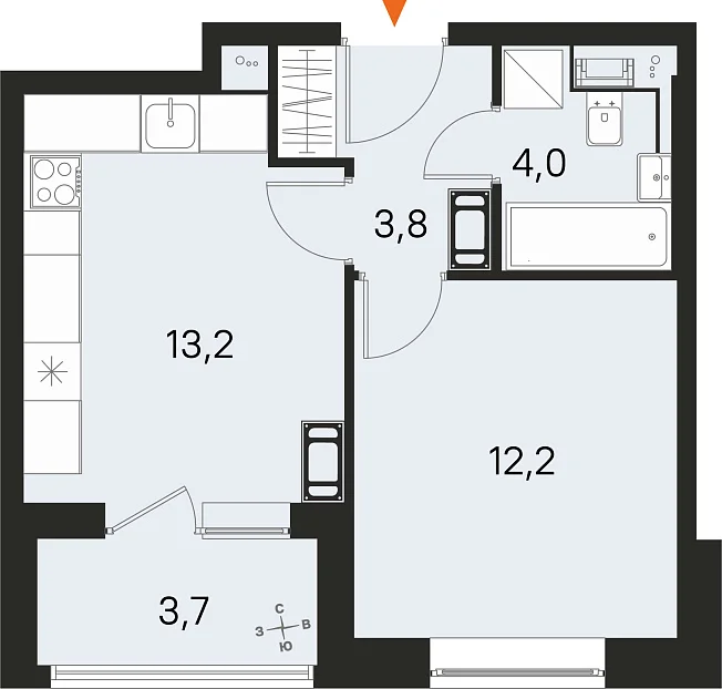 1-комнатная, 33.20 м²