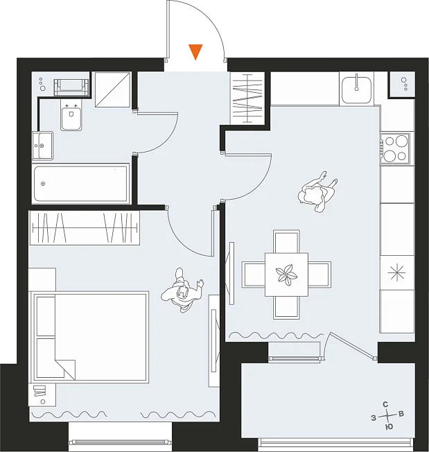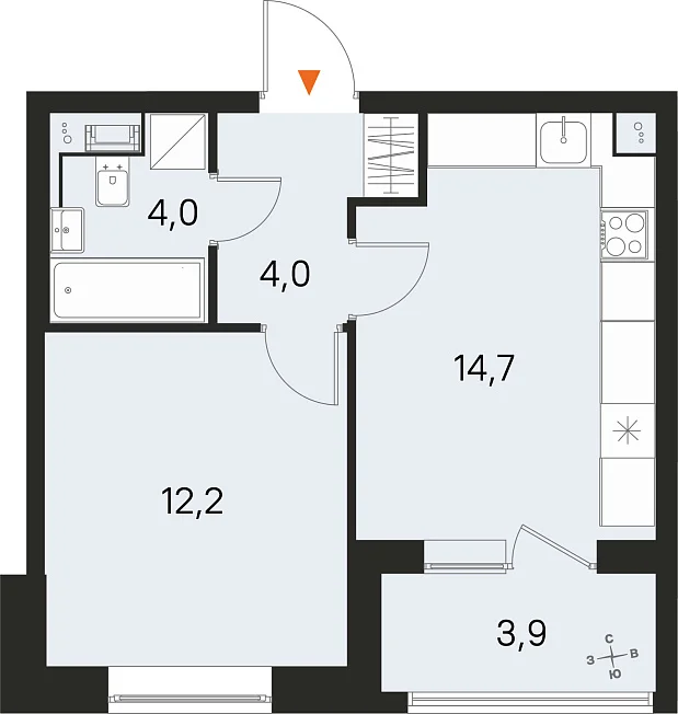 1-комнатная, 34.90 м²