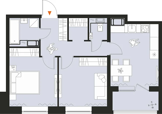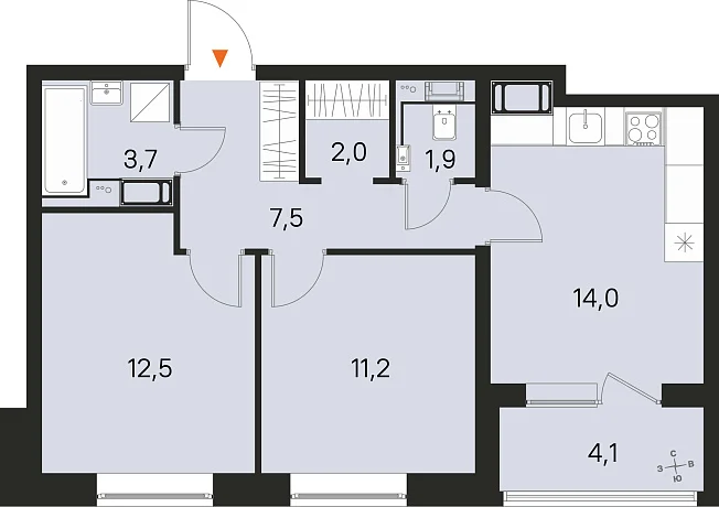 2-комнатная, 52.80 м²