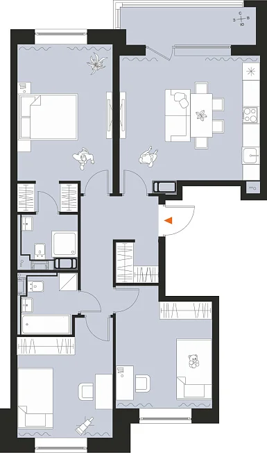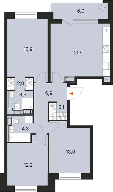 3-комнатная, 81.50 м²