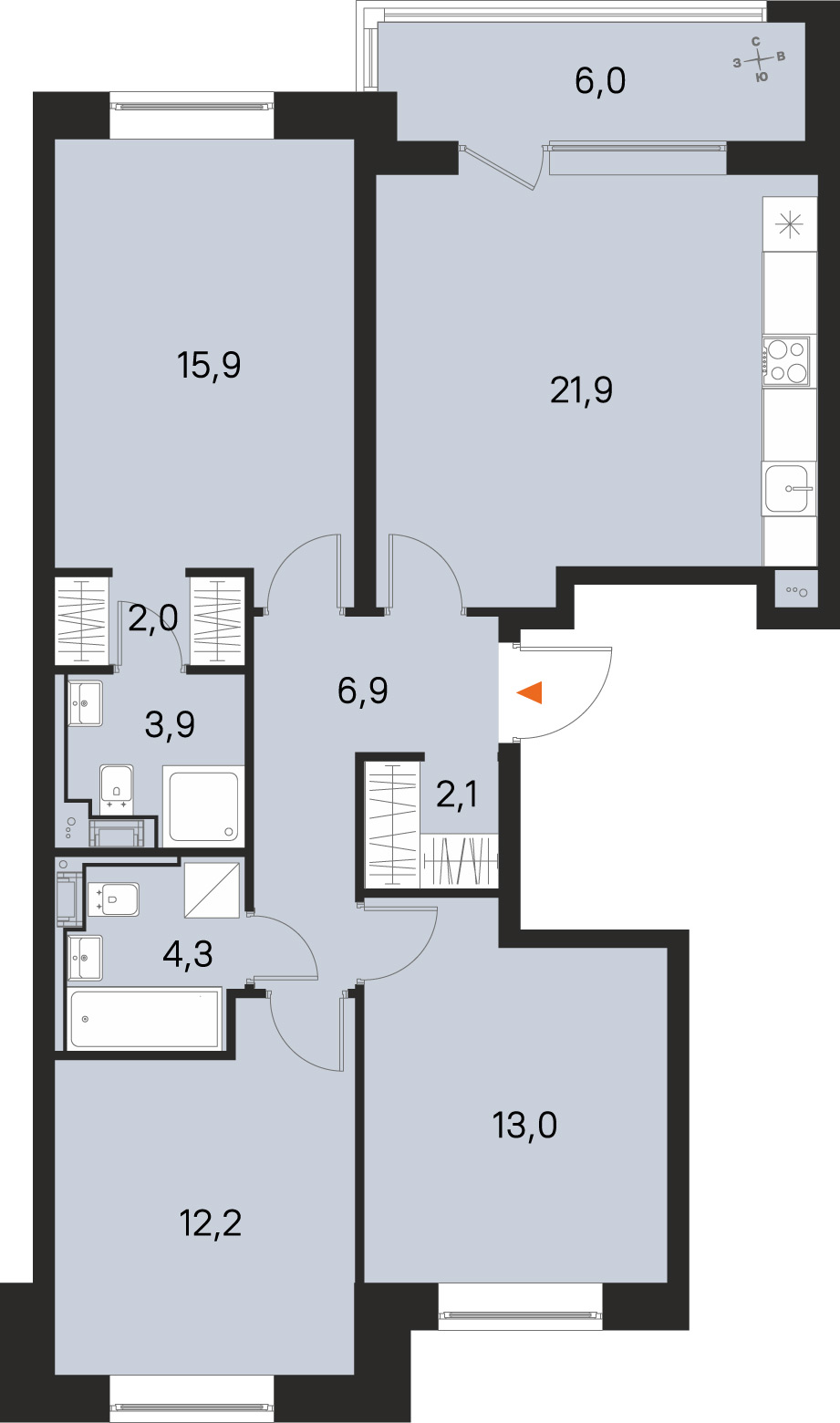 21.9 м²