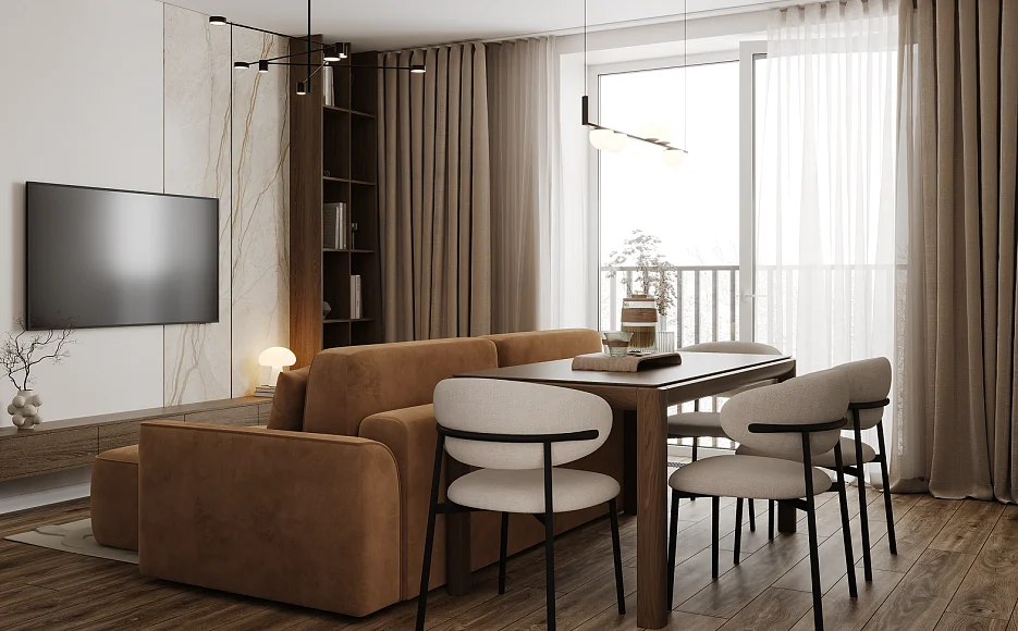 Французские балконы становятся естественным продолжением жилого пространства, наполняя интерьер светом и воздухом. Они подчёркивают архитектурную лёгкость квартиры и открывают вид на город, не выходя за пределы комнаты. Достаточно распахнуть двери, чтобы впустить свежий воздух и усилить ощущение простора.