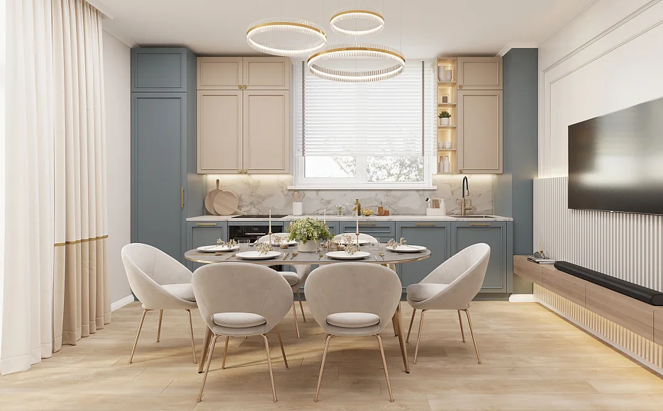 Трёхметровые потолки формируют ощущение объёма и свободы, визуально расширяя пространство квартиры. Они открывают больше возможностей для интерьерных решений — от выразительных светильников до многоуровневого освещения и акцентного дизайна потолка.