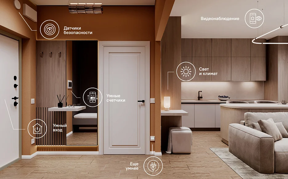 Предусмотрена возможность установки дополнительной дизайнерской фурнитуры с функционалом «Умного дома».