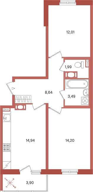 2-комнатная, 55.27 м²