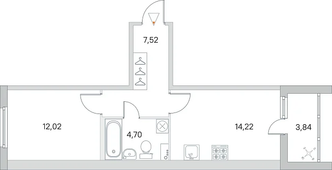 1-комнатная, 38.46 м²