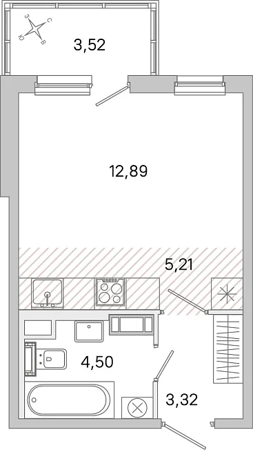 Студия, 25.92 м²