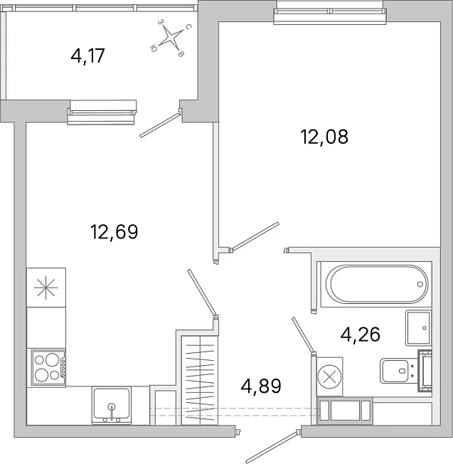 - 12.69 м²