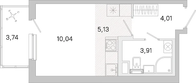 Студия, 23.09 м²