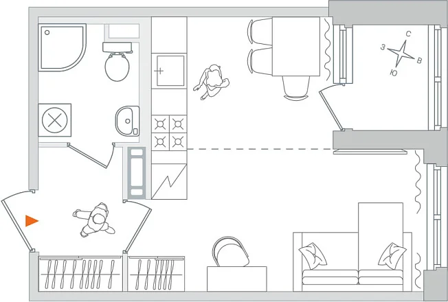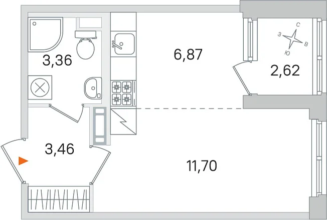 Студия, 25.39 м²