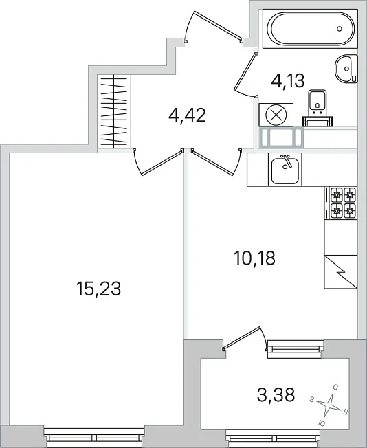 1-комнатная, 33.96 м²