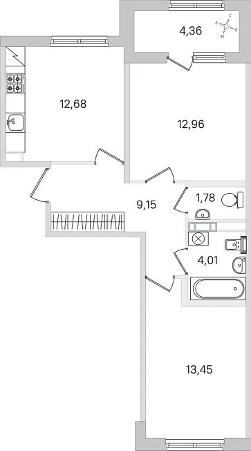 - 12.68 м²