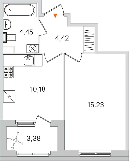 1-комнатная, 34.28 м²